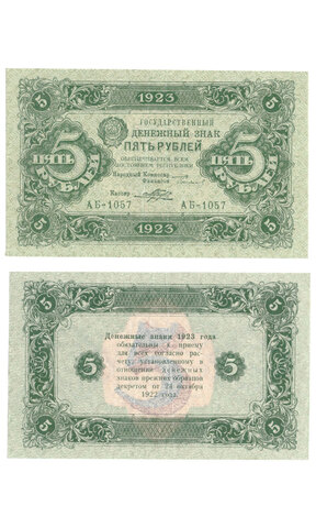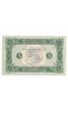 Денежный знак 5 рублей 1923 год. РСФСР XF