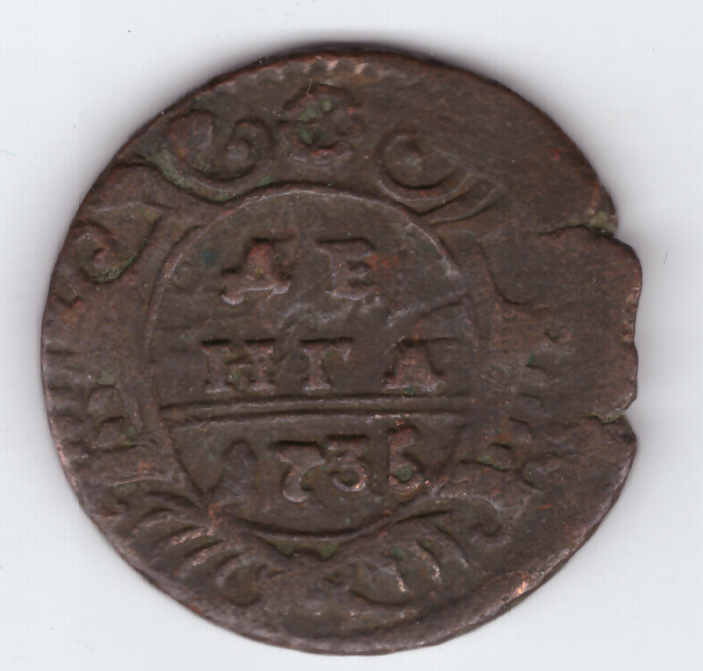 денга 1735 года (есть небольшой поворот аверс/реверс) VG-F