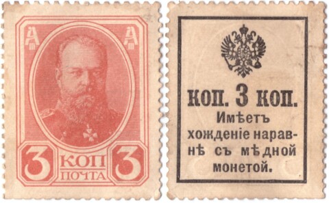 Деньги-марки 3 копейки 1917 год 4 выпуск XF