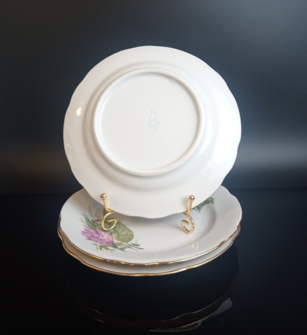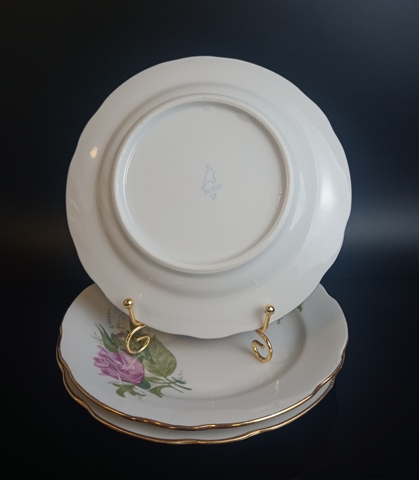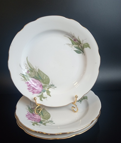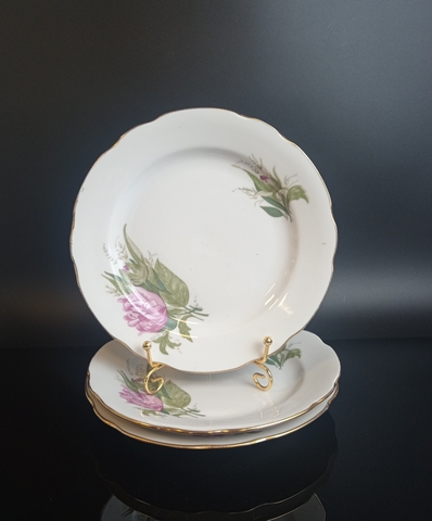 Десертные, пирожковые тарелки набор из 3 штук, клеймо Дулево ФЗ, "Пионы", фарфор, позолота, винтаж СССР 1988 год. Диаметр - 19.5 см. Присутствуют следы использования - состояние на фото
