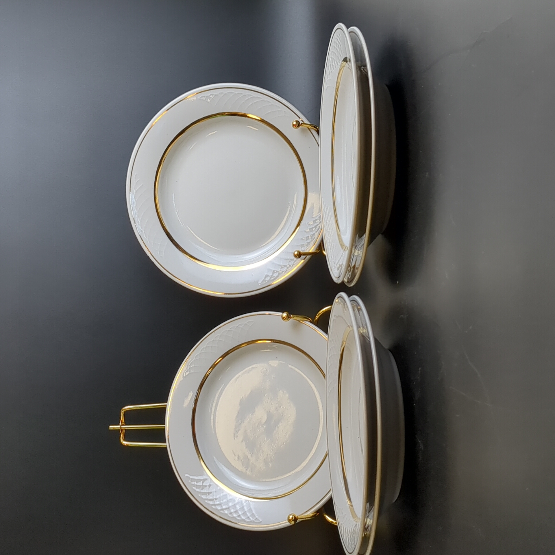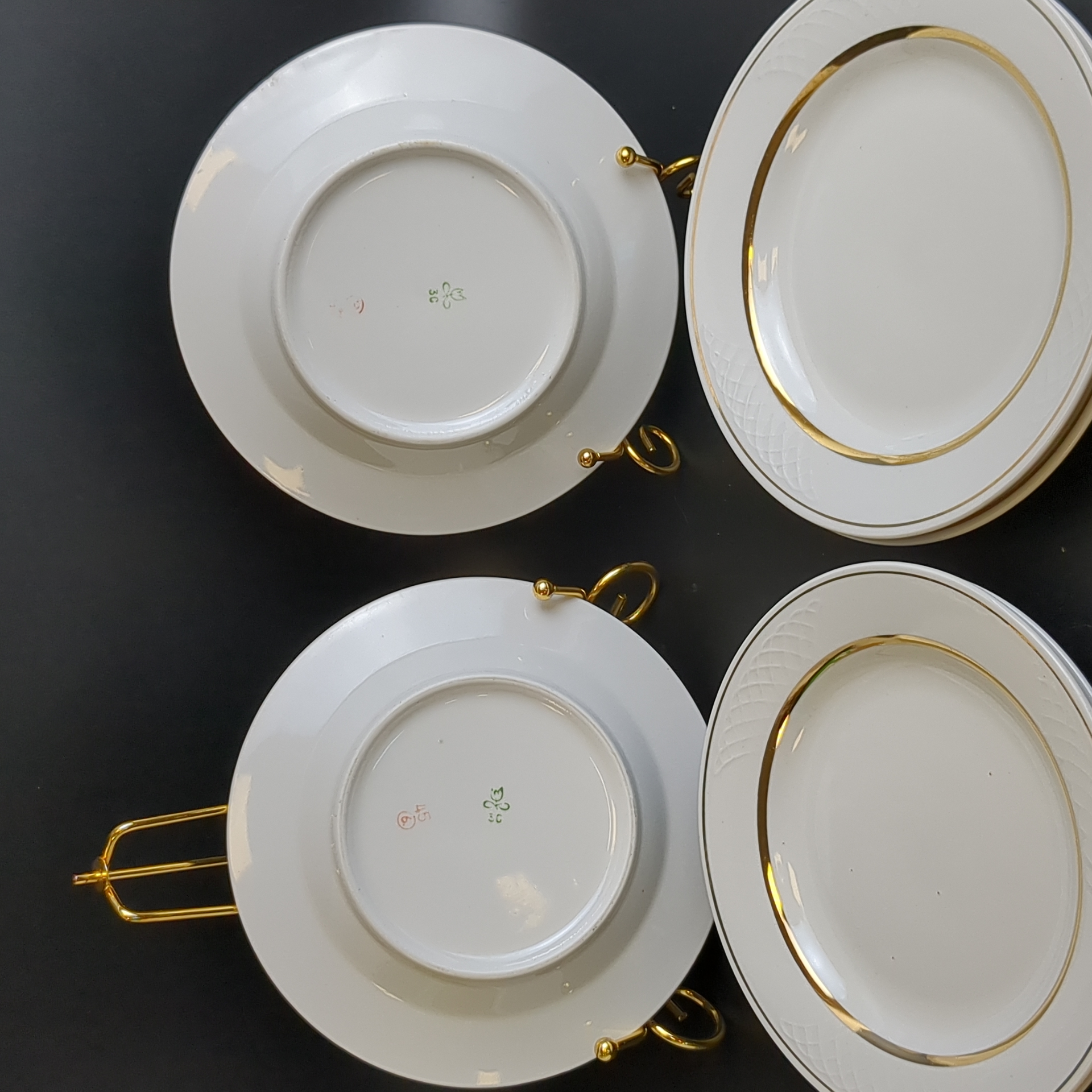 Десертные тарелки набор из 6 штук, фарфор, золочение, диаметр - 17.5 см, клеймо Владивостокский ФЗ, винтаж времен СССР 1981-1991 гг. Состояние и комплектация на фото