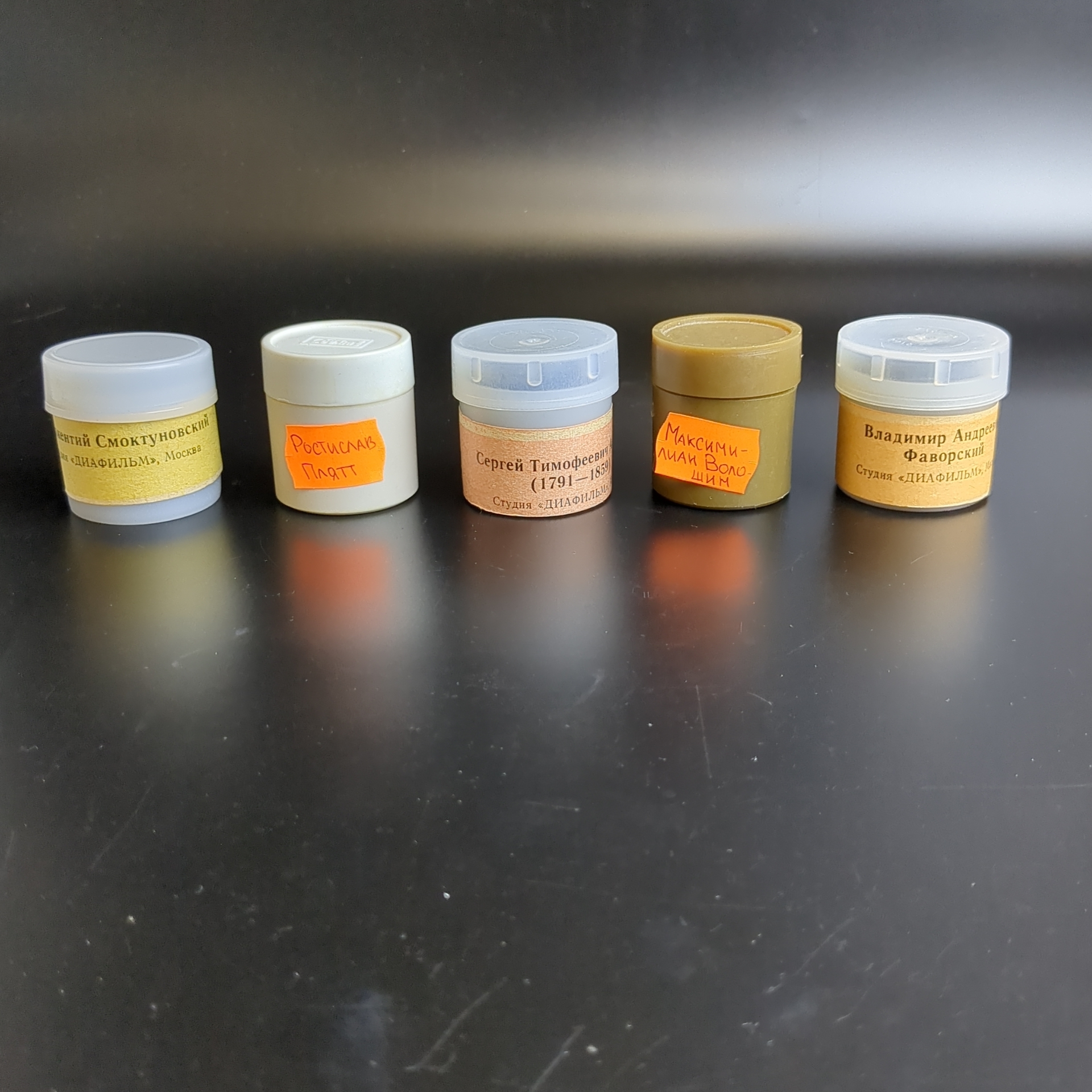 Диафильмы набор из 5 разных штук "Ростислав Плятт", "Максимилиан Волошин", "Иннокентий Смоктуновский" и др, ч/б, с текстом, полные, студия "Диафильм" Москва, винтаж времён СССР