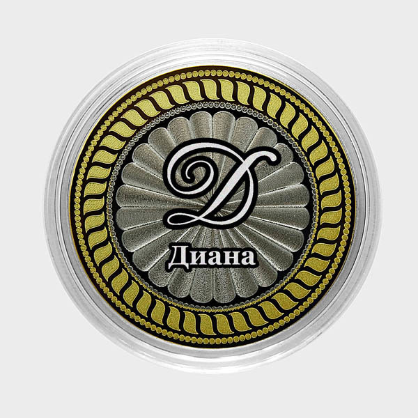 Сувенирная монета "Диана" номиналом 10 рублей с выгравированным изображением.