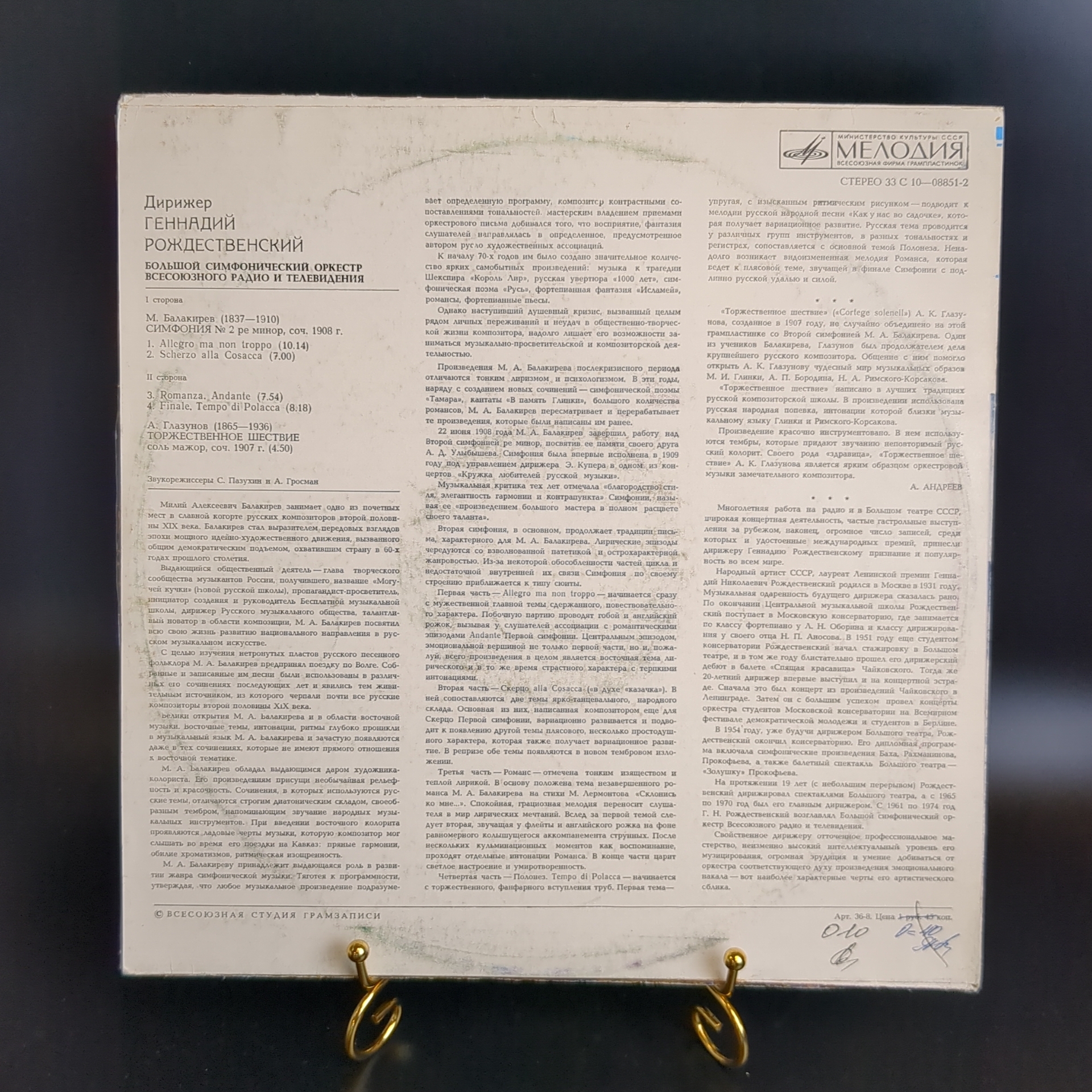 Дирижер Геннадий Рождественский виниловая пластинка 12 дюймов М.Балакирев симфония №2, А.Глазунов торжественные шествия, LP классика, винтаж СССР Мелодия