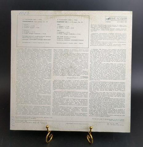 Дирижер Геннадий Рождественский виниловая пластинка 12 дюймов, симфония №3 А.Глазунов, LP, классика винтаж СССР Мелодия 1983 год