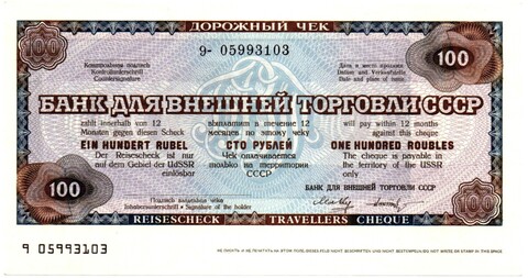 Дорожный чек 100 рублей - СССР 1980-е годы - БАНК ВНЕШНЕЙ ТОРГОВЛИ - 9 05993103 - Пресс!