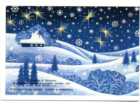 Двойная поздравительная открытка художник Н. Петухова 1989 год винтаж, чистая