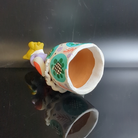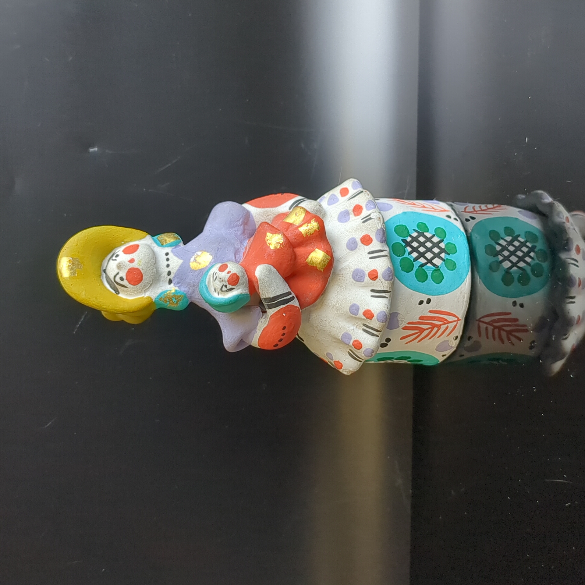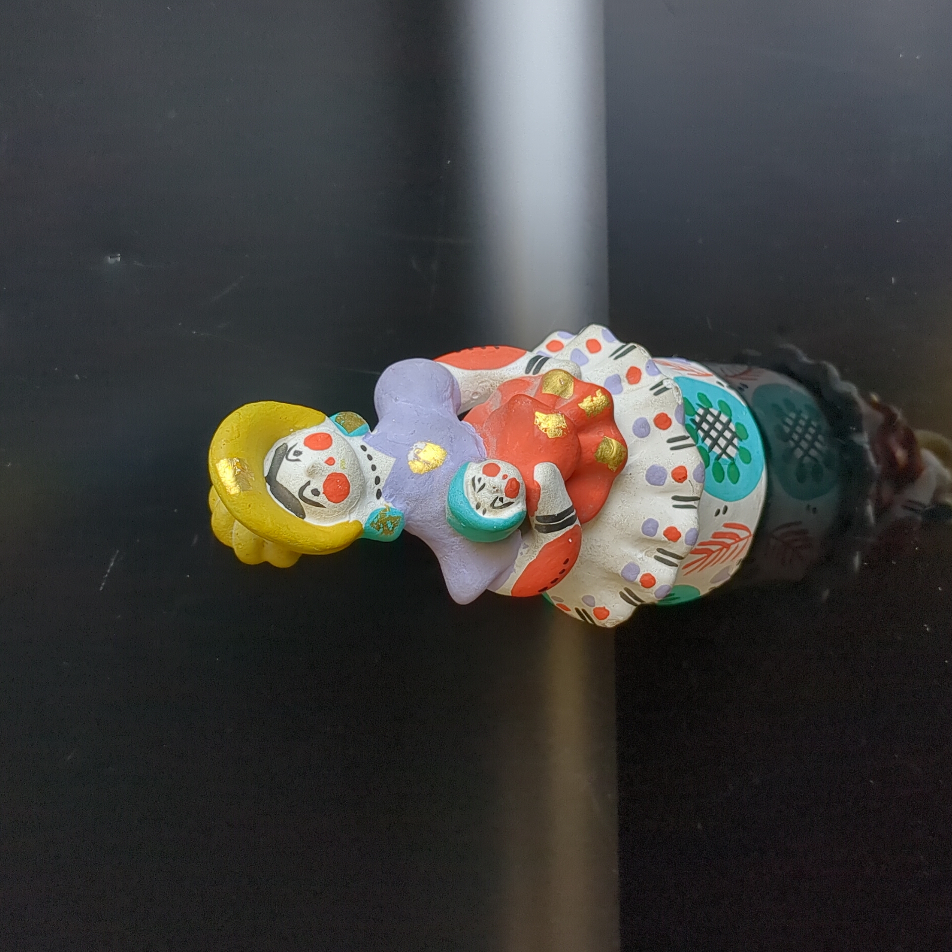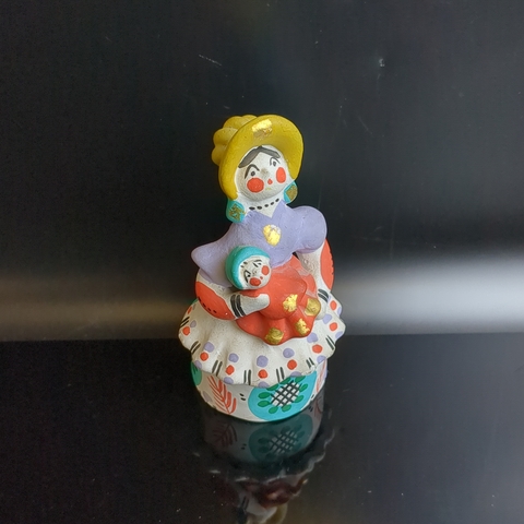 Статуэтка Дымковская игрушка "Барыня с младенцем", кормилица . СССР. ручная роспись, сусальное золото. Киров-Вятка, винтаж 1980-1990 гг. Высота 14 см. Дымковская игрушка "Нянька-кормилица" — это символ заботы, плодородия и продолжения рода, отражающий быт и традиции русского народа, где няни заботились о детях; она символизировала достаток, здоровье, природу (зеленый) и семью (красный), а ее яркие цвета несли пожелания силы, чистоты и благополучия. Дымковская игрушка – один из самых известных промыслов русской народной игрушки. Он возник в слободе Дымково Вятской губернии. Дымковскую игрушку лепят из красной глины, смешанной с просеянным речным песком. Сервантное хранение, присутствуют следы использования - состояние на фото