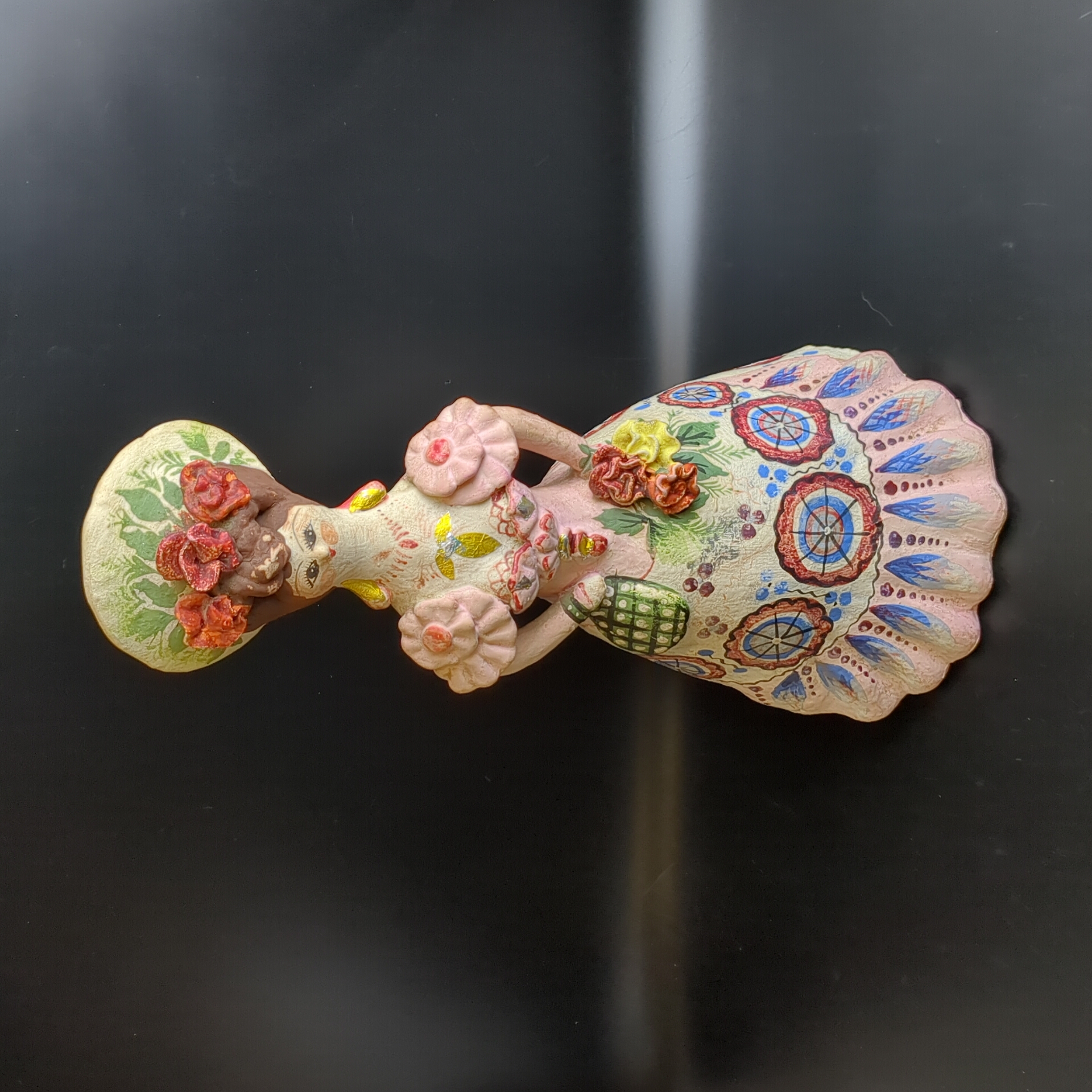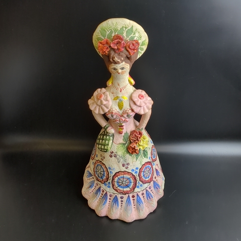 Дымковская игрушка "Барыня с цветами и сумкой" . СССР. Высота 34 см