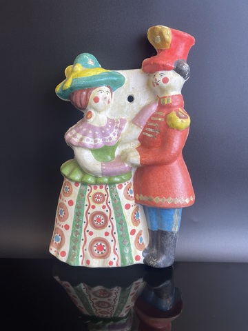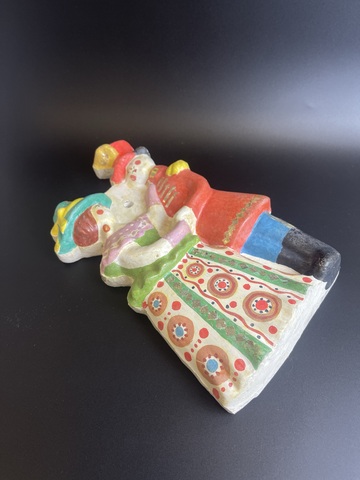 Дымковская игрушка декор на стену Барыня и гусар, ручная роспись, высота 26 см, ширина - 16 см, Киров- Вятка, 1970-1990 гг. Вес - 1.248 кг. Присутствуют следы использования - состояние на фото