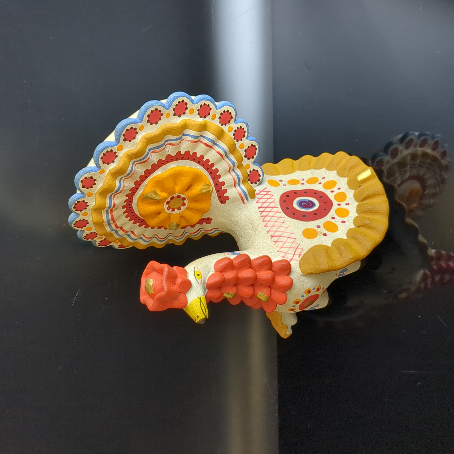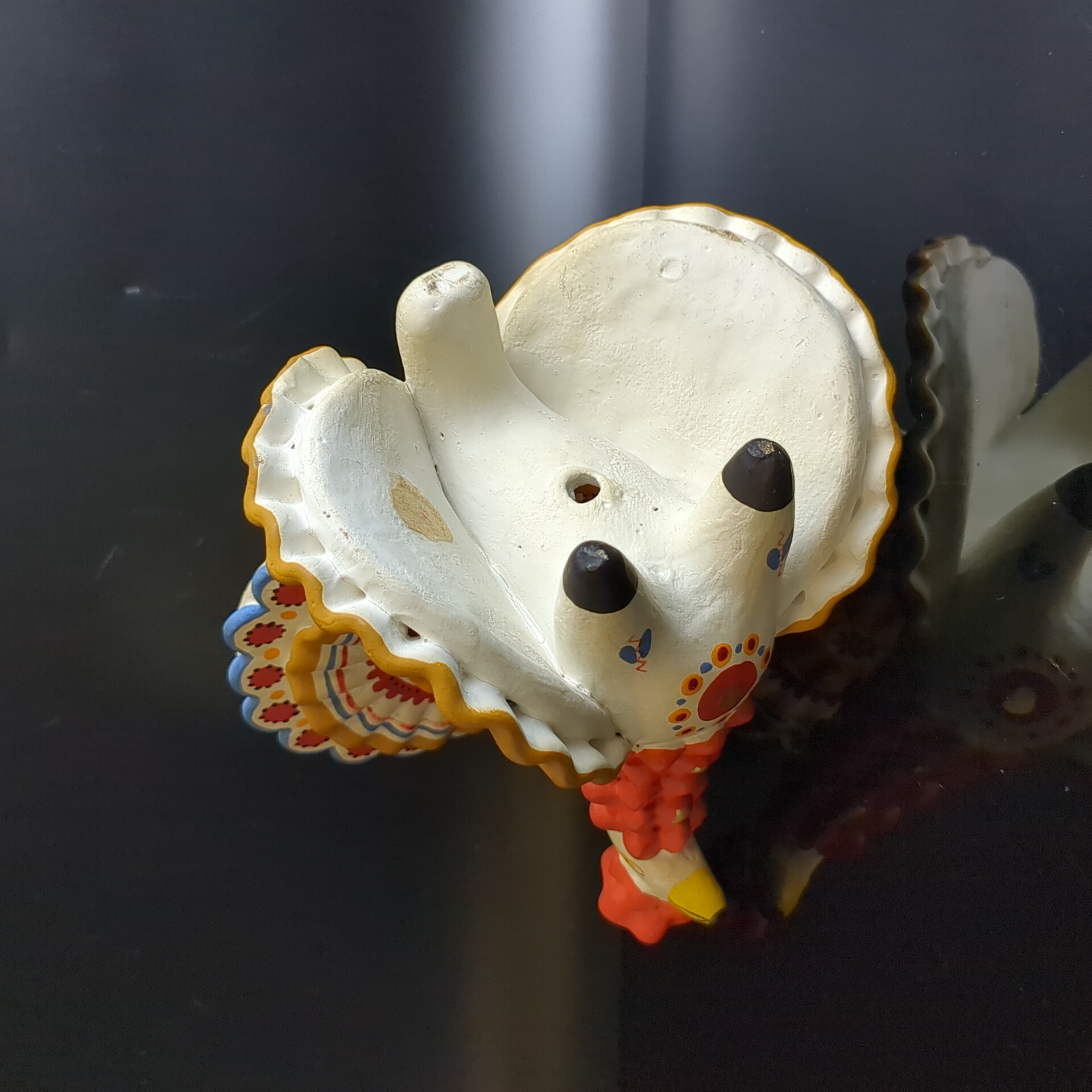 Статуэтка Дымковская игрушка Индюк 15,5 см, шикарная ручная роспись, сусальное золото. Киров-Вятка, винтаж 1980-1990 гг. Дымковская игрушка – один из самых известных промыслов русской народной игрушки. Он возник в слободе Дымково Вятской губернии. Дымковскую игрушку лепят из красной глины, смешанной с просеянным речным песком. Дымковский индюк – это не просто игрушка, а символ народного творчества, олицетворяющий торжественность, богатство, плодородие и солнечную радость, с яркой, геометричной росписью (круги, полоски). Сервантное хранение, присутствуют следы использования - состояние на фото