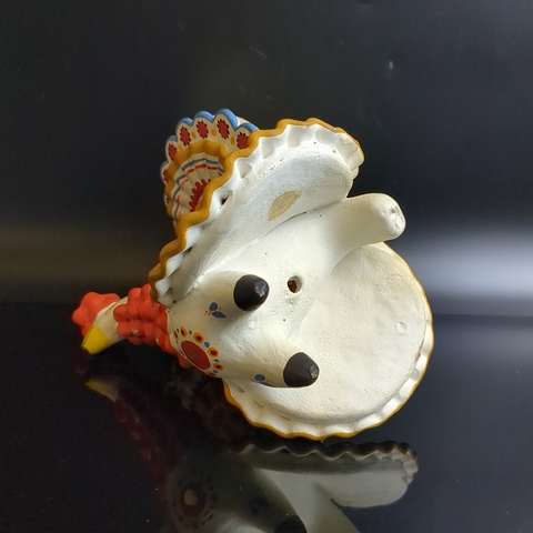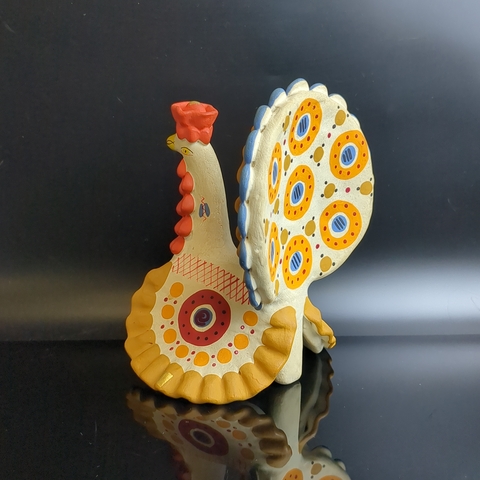 Дымковская игрушка Индюк 15,5 см, шикарная ручная роспись, сусальное золото. Киров-Вятка, винтаж 1980-1990 гг