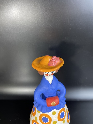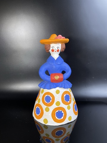 Дымковская игрушка Барыня с муфтой ручная роспись, высота - 19.5 см, статуэтка СССР, 1970-1980 гг.