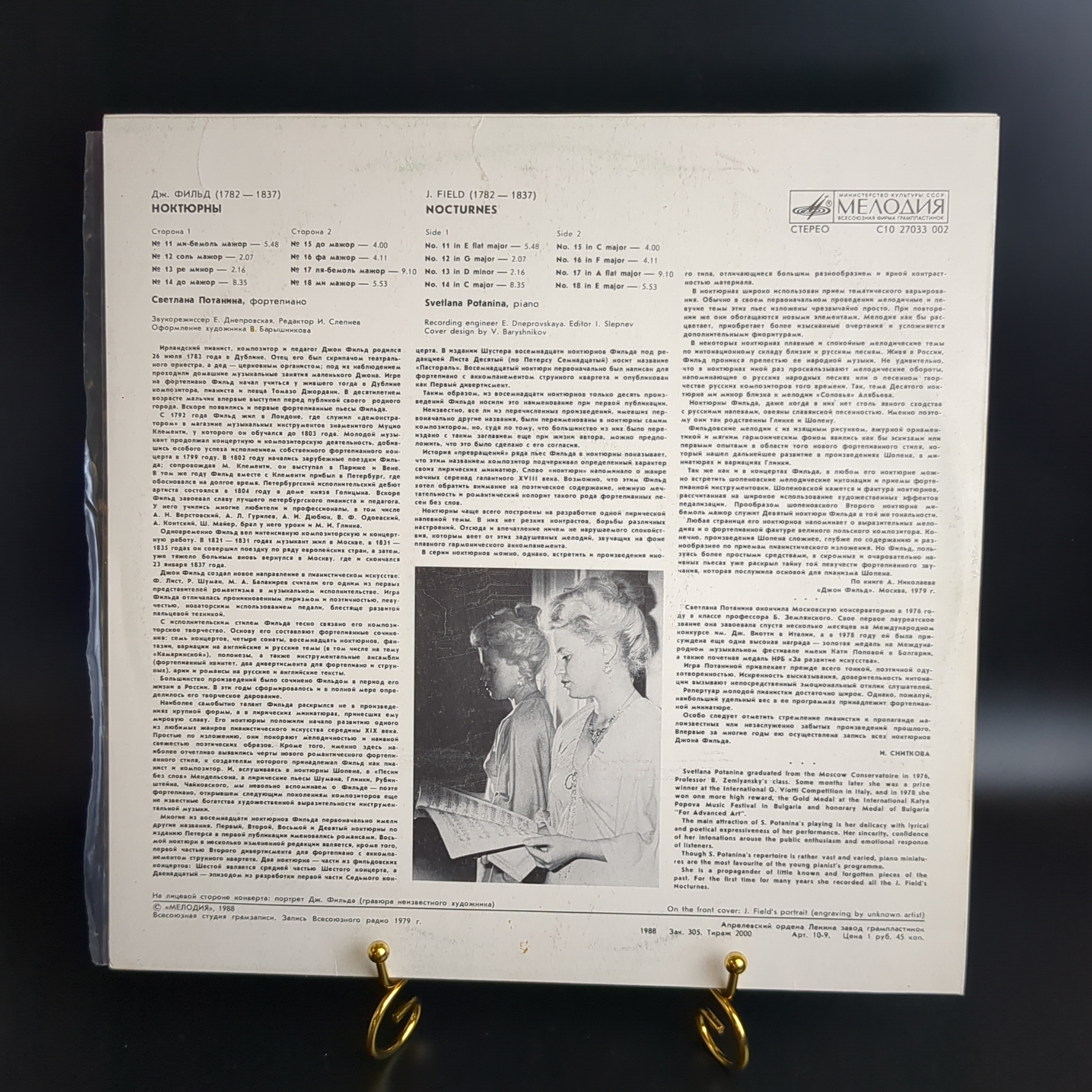 Дж. Фильд ноктюрны N11-18, виниловая пластинка 12 дюймов Светлана Потанина фортепиано, LP классика, винтаж СССР Мелодия 1988 год. Классическая музыка на виниле. Конверт: EX Диск: EX