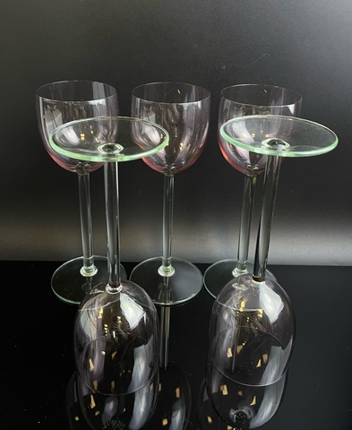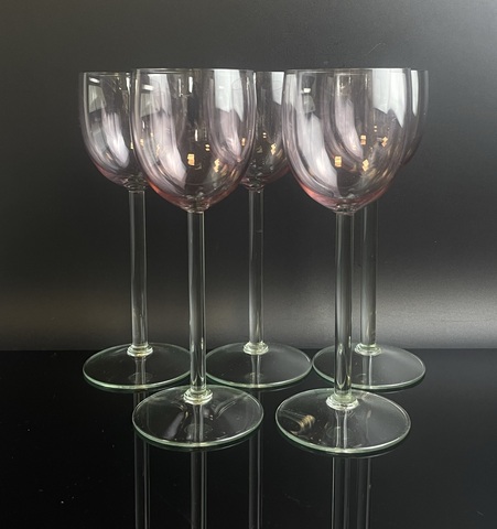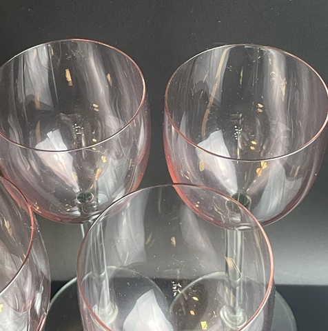 Элегантные бокалы набор из 5 штук на изящной ножке ,цветное стекло, розовое, высота-17.5 см, 100 мл., винтаж СССР 1970-1990 гг. Присутствуют следы использования- состояние на фото
