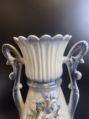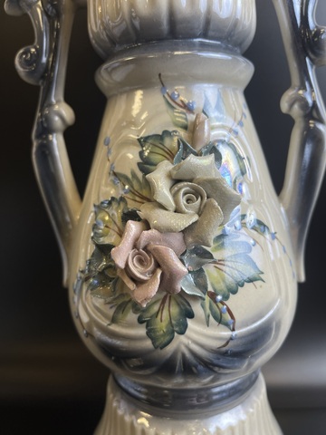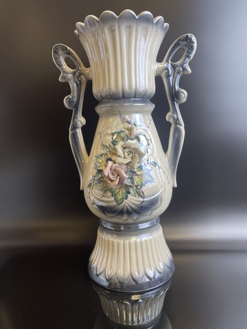 Фарфоровая винтажная ваза с изящными цветами, высота -33.5 см, перламутр.