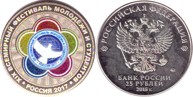 Фестиваль молодежи и студентов. Гравированная монета 25 рублей.