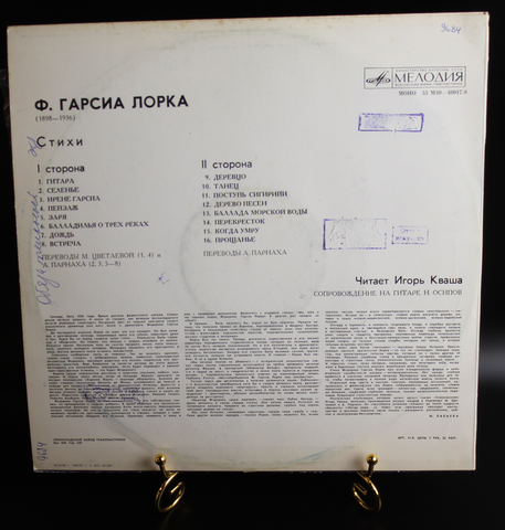 Ф.Гарсиа Лорка - Стихи виниловая пластинка 12 дюймов LP читает Игорь Кваша, СССР Мелодия