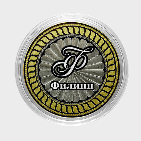 Сувенирная монета "Филипп" номиналом 10 рублей с выгравированным изображением.