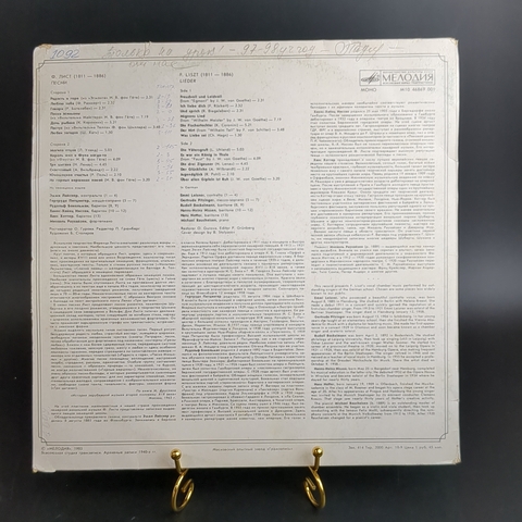 Ф.Лист песни виниловая пластинка 12 дюймов, Исполнительное искусство, Радость и горе, Люблю тебя и др.,LP, винтаж СССР Мелодия 1985 год. Присутствуют следы использования - состояние на фото