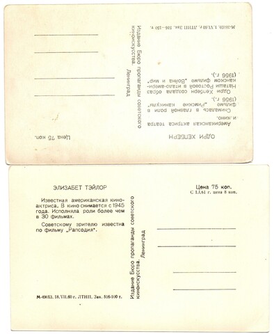 Фото Артисты мирового кино Э. Тейлор О. Хепберн 1960 г XF