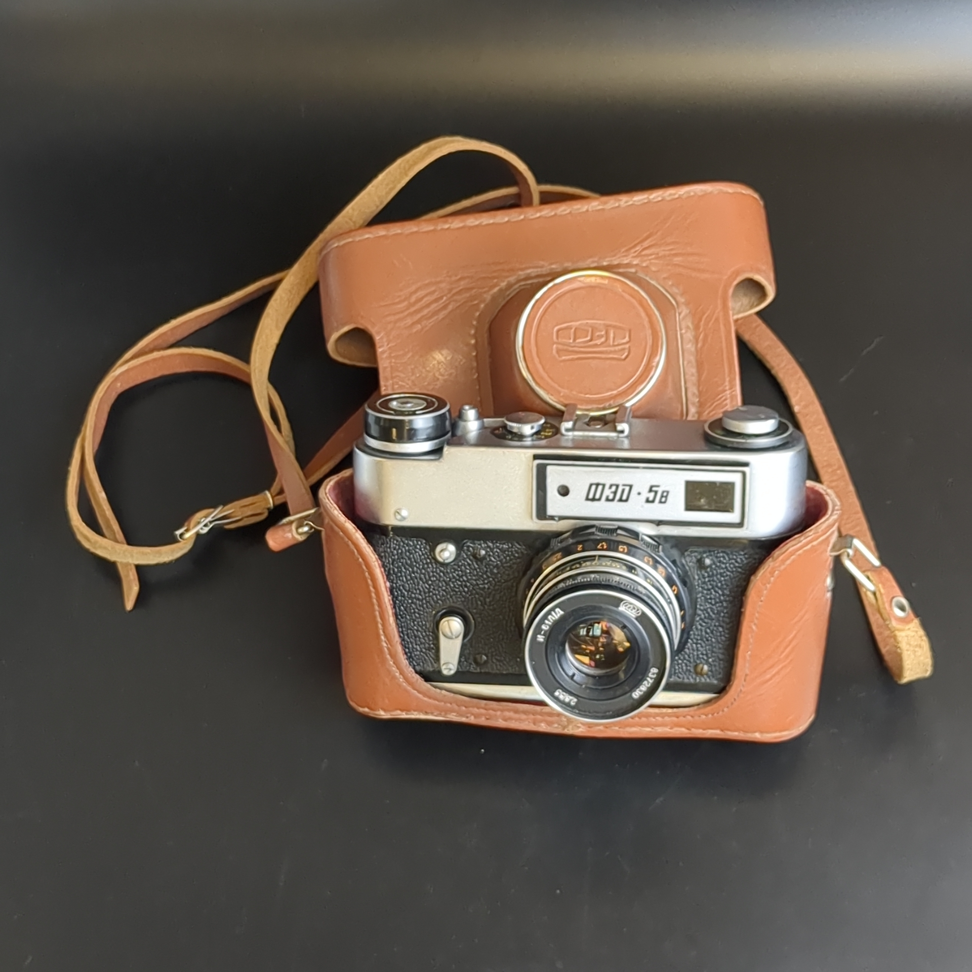 Фотоаппарат "ФЭД-5 в" Знак качества СССР, объективом "Индустар-61 Л/Д" в родном кофре, металл, пластик, стекло, кожа, Харьковский машиностроительный завод им. Дзержинского (ФЭД), СССР, 1978-1980 гг.