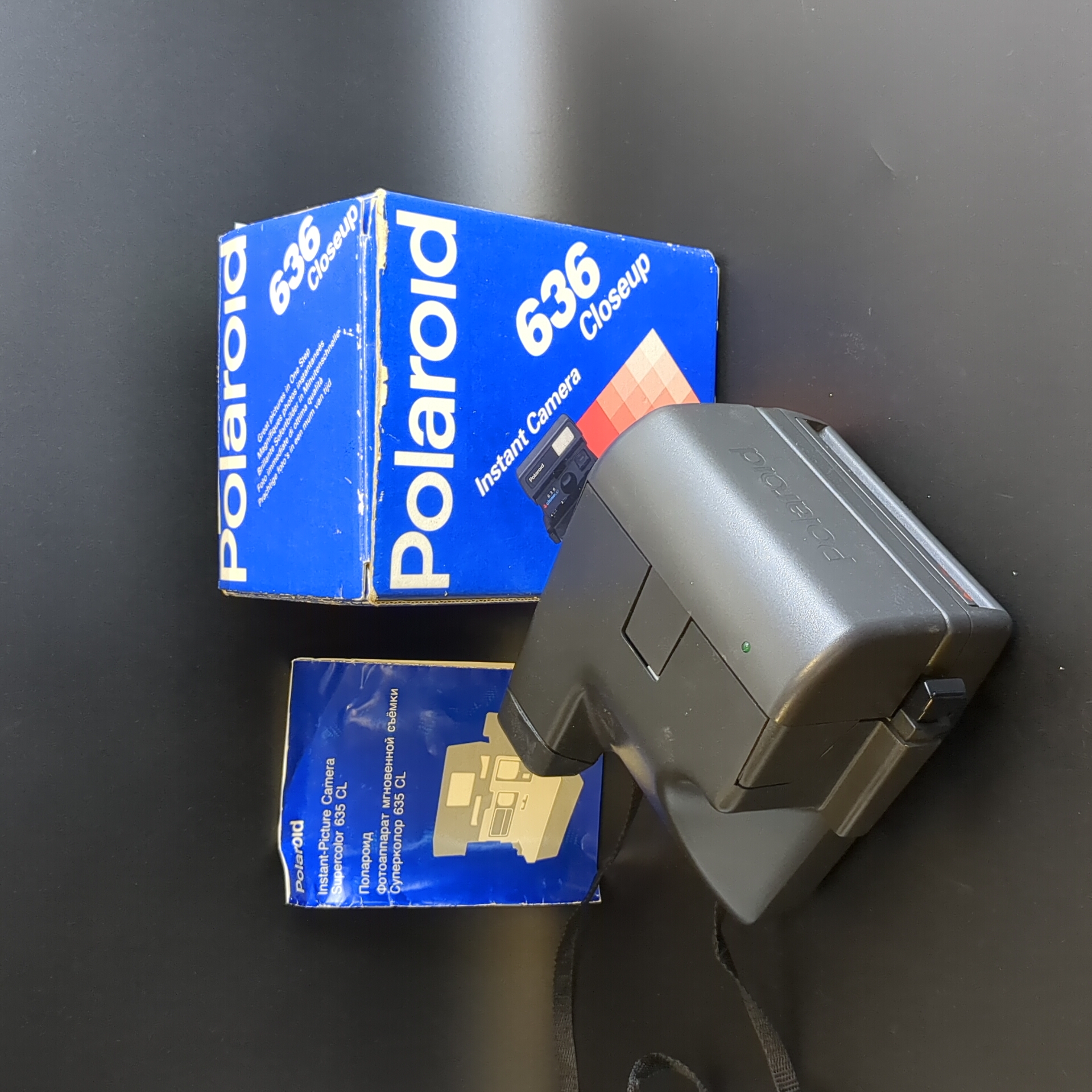 Фотоаппарат "Polaroid 636 Close Up", пластик, металл, Polaroid, Великобритания, 1988-2000 гг. В оригинальной коробке. . Присутствуют следы использования. Состояние на фото