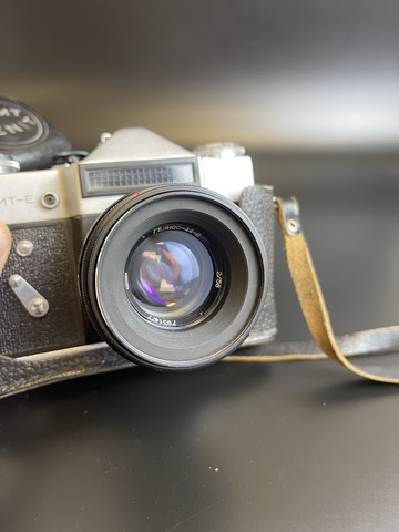 Фотоаппарат Зенит - Е с объективом Гелиос 44 - 2 2/58 и крышкой для объектива. Номер 790142921 металл, стекло, кожа, пластик, Красногорский механический завод (КМЗ), СССР, 1977 г.