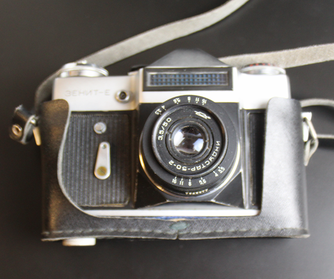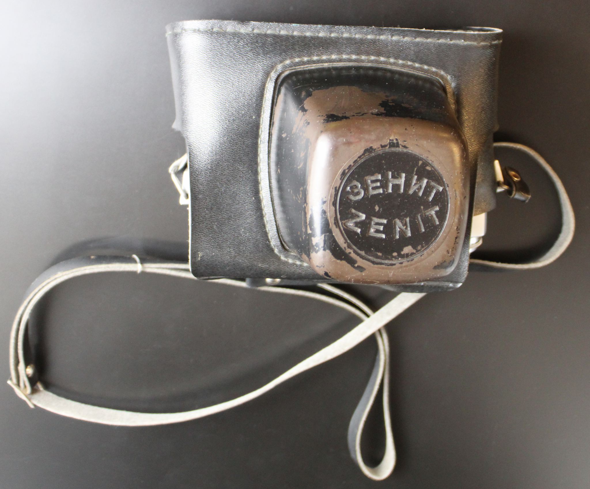 Фотоаппарат "Зенит-Е" с объективом "Индустар 61Л/З", металл, стекло, кожа, пластик, Красногорский механический завод (КМЗ), СССР, 1977 г.