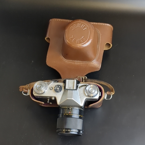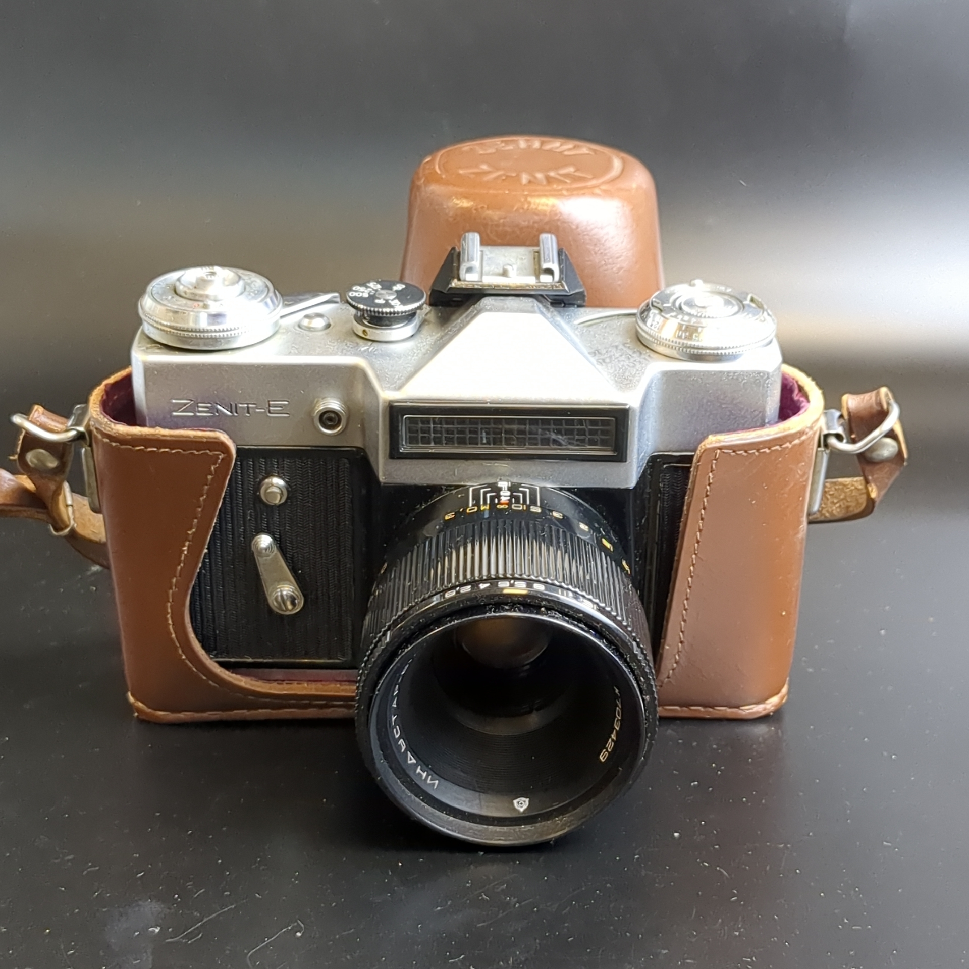 Фотоаппарат "Зенит-Е" с объективом "Индустар 61Л/З", металл, стекло, кожа, пластик, Красногорский механический завод (КМЗ), СССР, 1977 г.