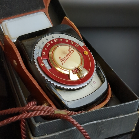 Фотоэкспонометр "Ленинград 2" (типа Ю11/2), в родной коробке, кофре, пластик, металл, кожа, Завод «Вибратор», г. Ленинград, СССР, 1960-1970 гг.