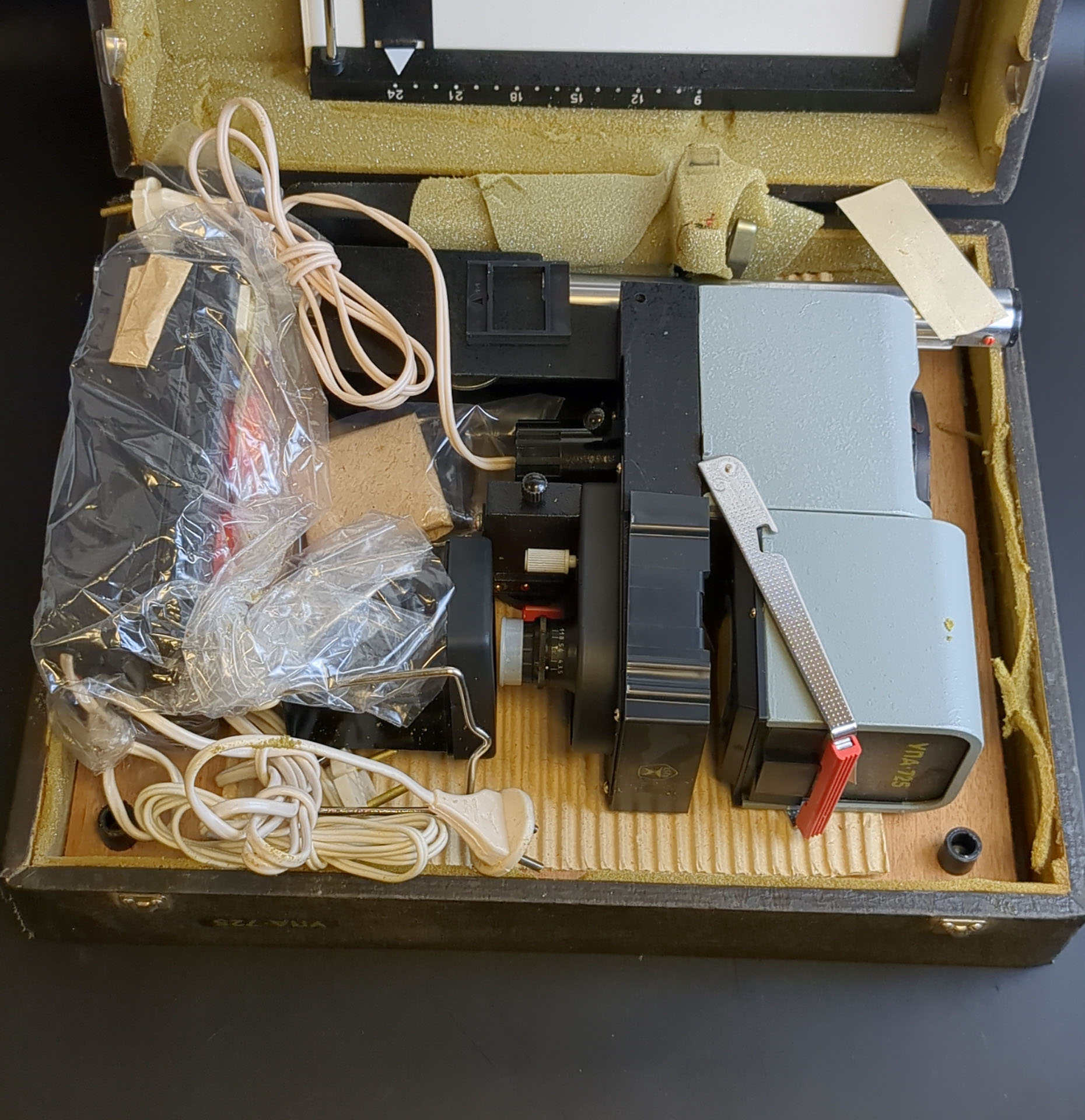Фотоувеличитель "УПА-725", Комплект, металл, стекло, СССР, в чемодане