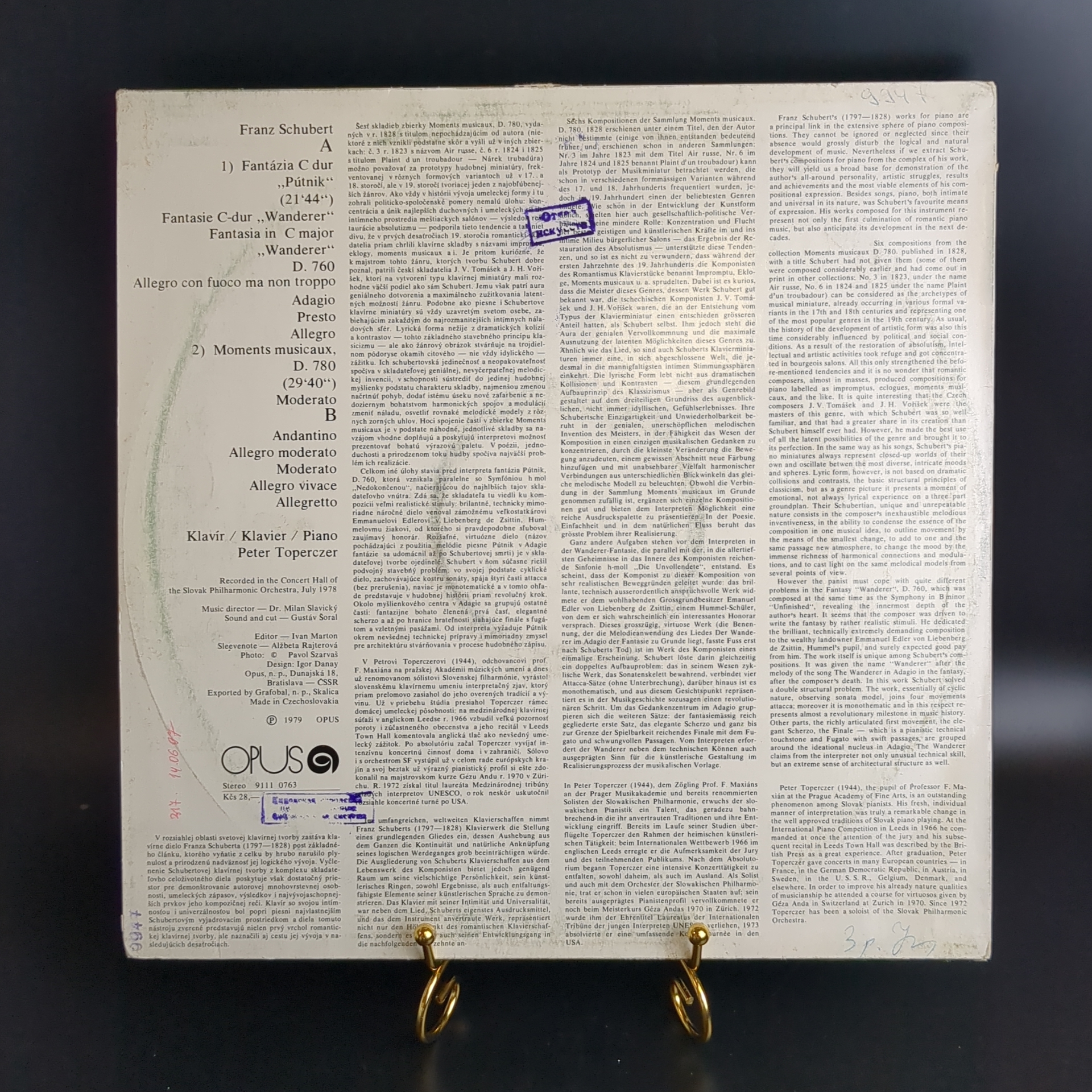 Franz Shubert/Франц Шуберт виниловая пластинка 12 дюймов Fantasia in C(Wanderer) D.760/ Moments Musicausx D.780, LP, классика винтаж Чехословакия Opus stereo, времен СССР 1979 год. Классическая музыка на виниле. Конверт: EX Диск: EX