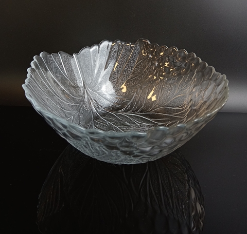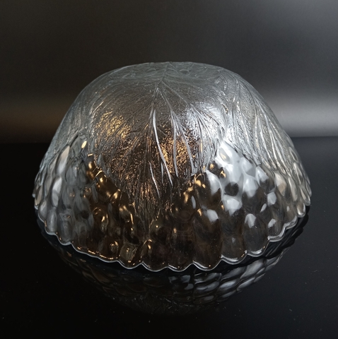 Фруктовница стекло, изящный резной декор рельефный, растительный орнамент, винтаж СССР 1970-1990 гг. Высота - 8.5 см, диаметр - 22.5 см. Присутствуют следы использования- состояние на фото