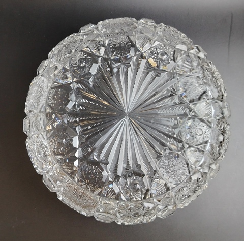 Фруктовница, ваза для фруктов большая хрустальная, алмазная грань, геометрический орнамент, изящная, диаметр- 26 см, винтаж СССР 1970-1999 гг. Высота - 9.5 см. Присутствуют следы использования- состояние на фото