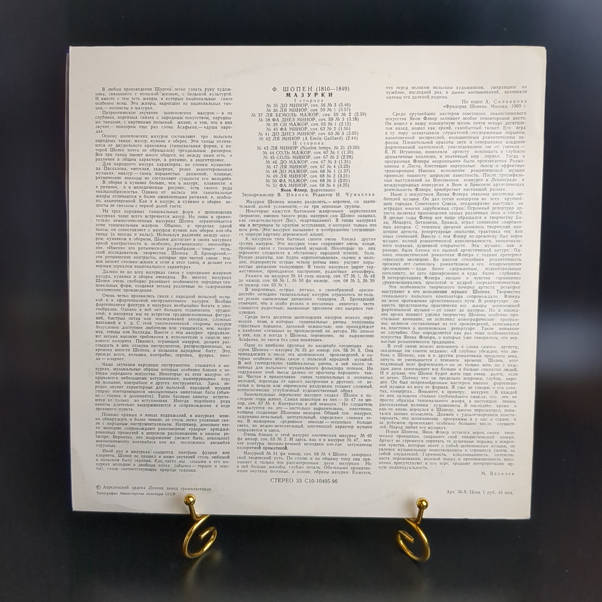 Ф.Шопен Мазурки виниловая пластинка 12 дюймов Яков Флиер фортепиано, винтаж, LP классика, СССР Мелодия. Классическая музыка на виниле. Конверт EX / Диск EX-