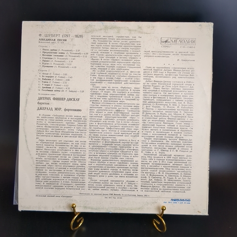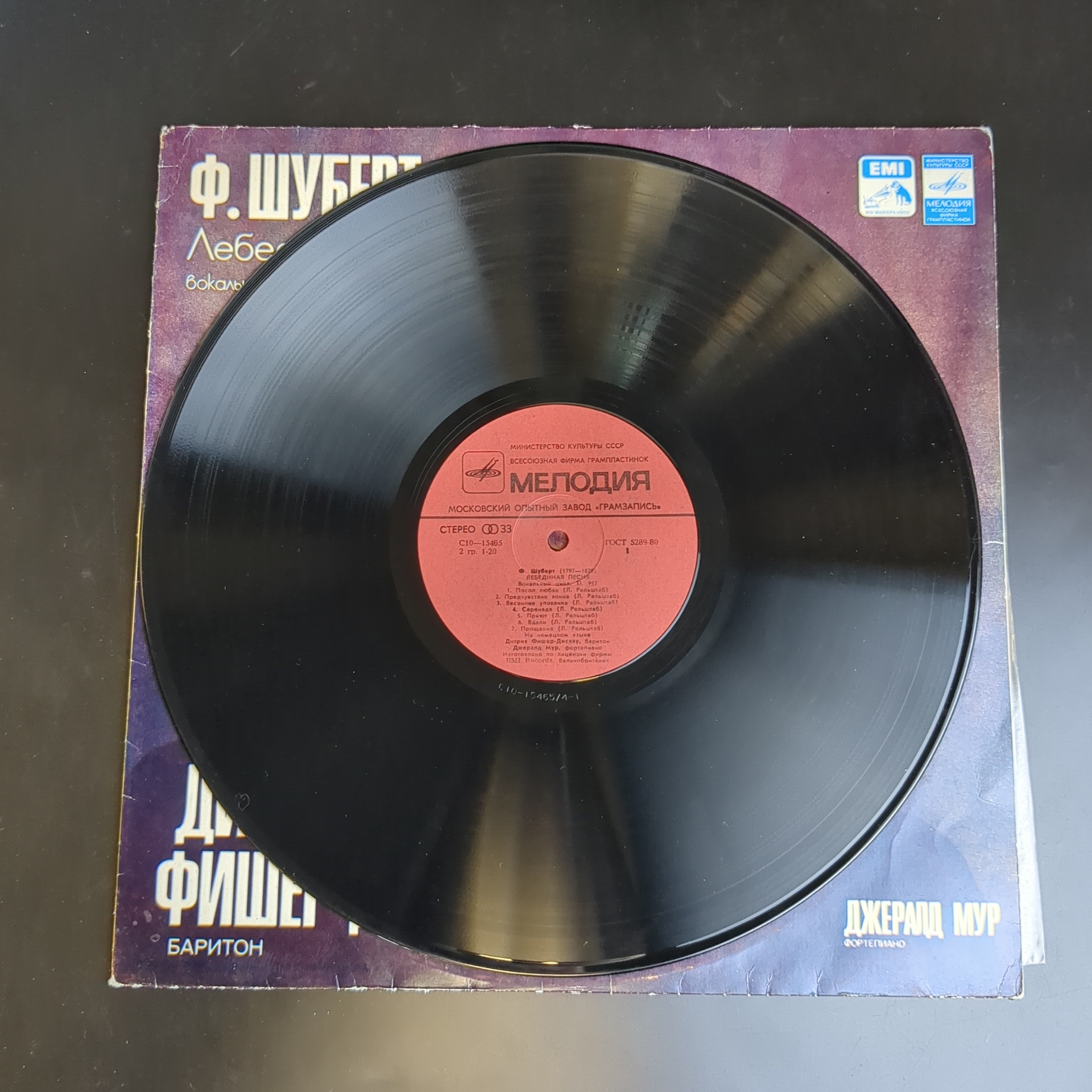 Ф.Шуберт виниловая пластинка 12 дюймов Лебединая песня, вокальный цикл, Дитрих Фишер -Дискау, Джералд Мур, LP, классика, винтаж СССР Мелодия. Конверт-EX, Диск-EX.