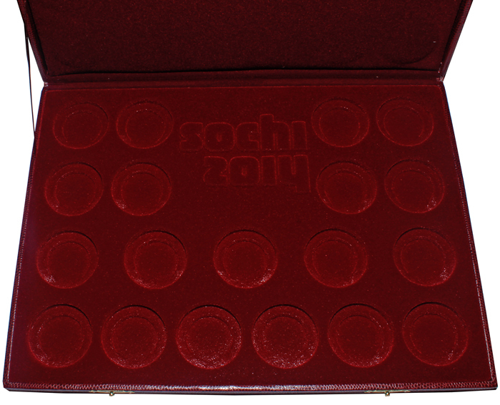 Футляр предназначен для хранения комплектов монет, посвященных Олимпиаде в Сочи 2014 года: