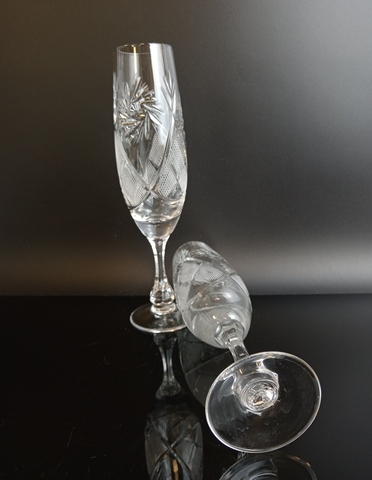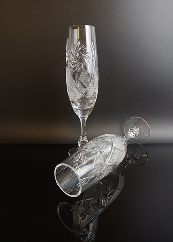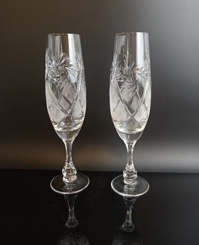 Фужеры для шампанского 2 штуки хрустальные, 180 мл., алмазная грань, изящный декор, высота- 21 см, винтаж СССР 1970-1990 гг. Присутствуют следы использования- состояние на фото