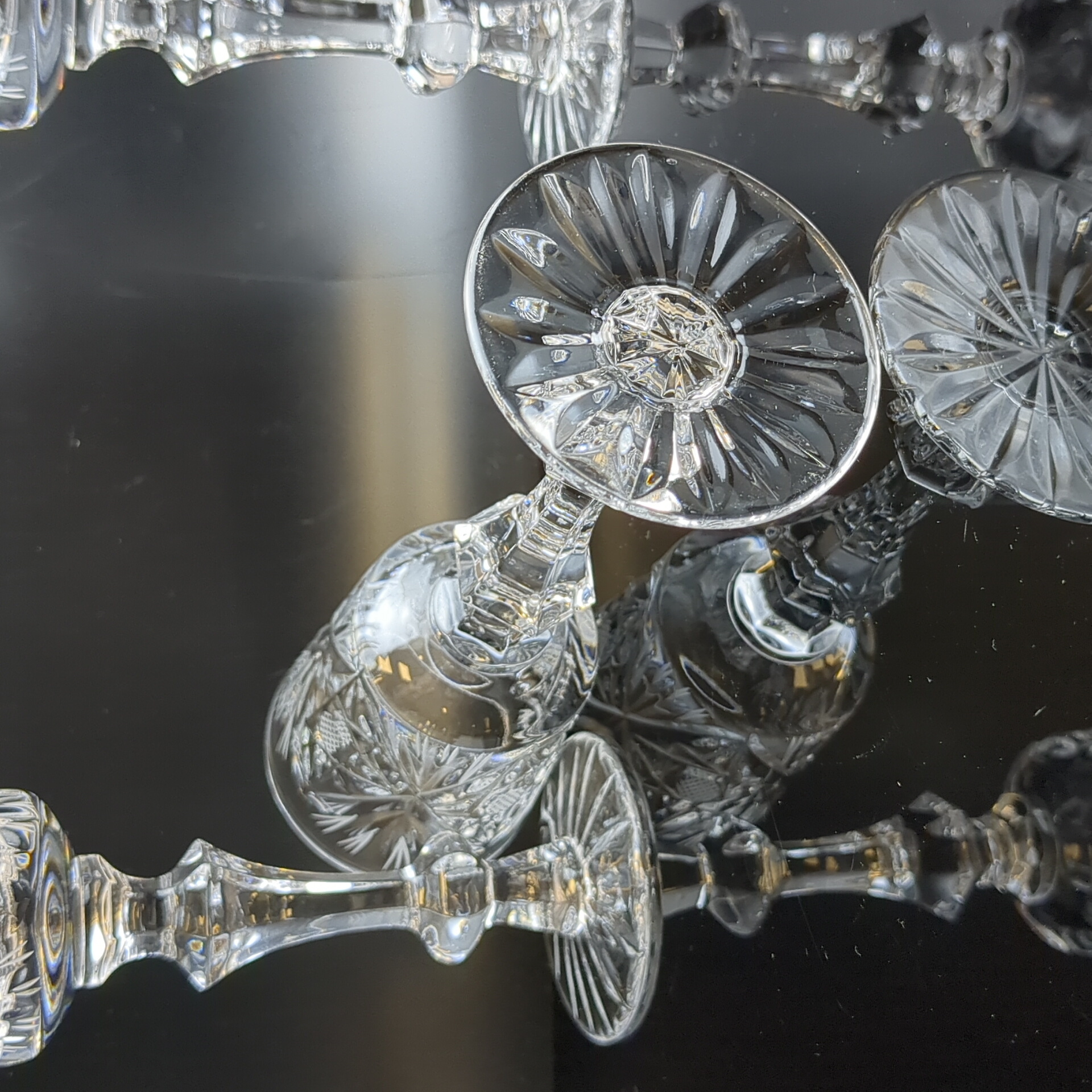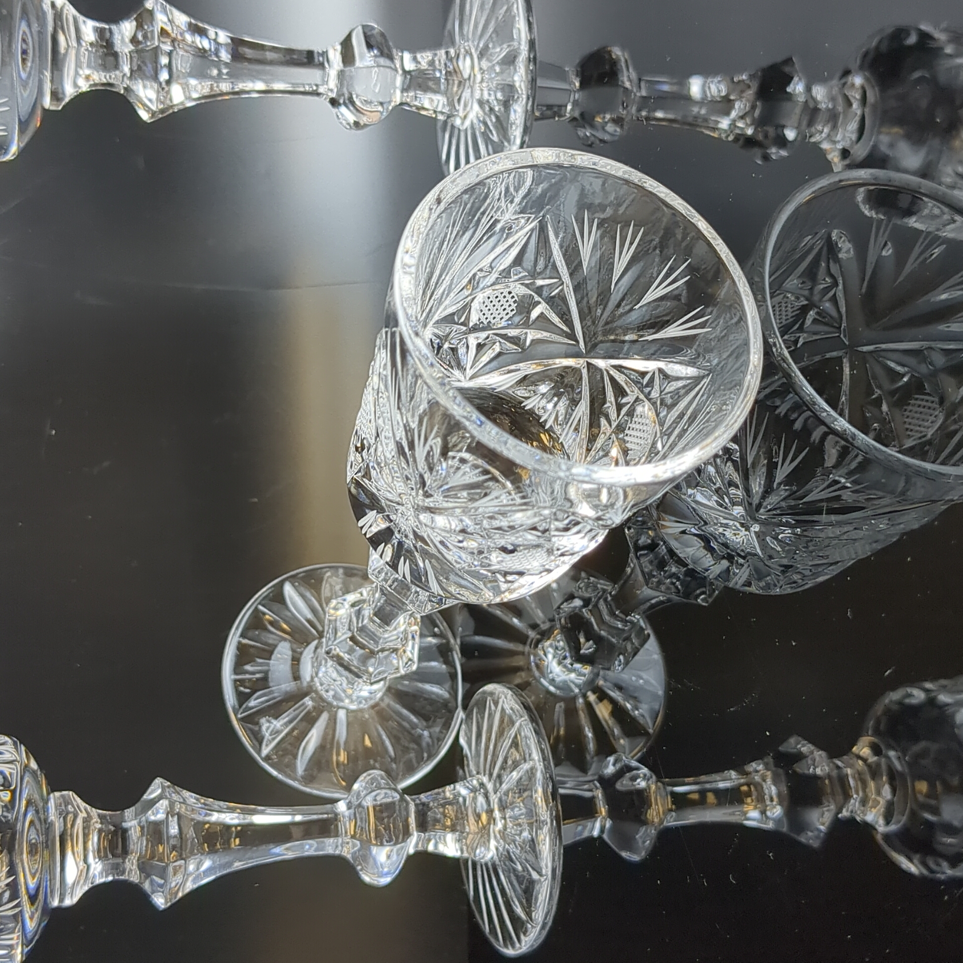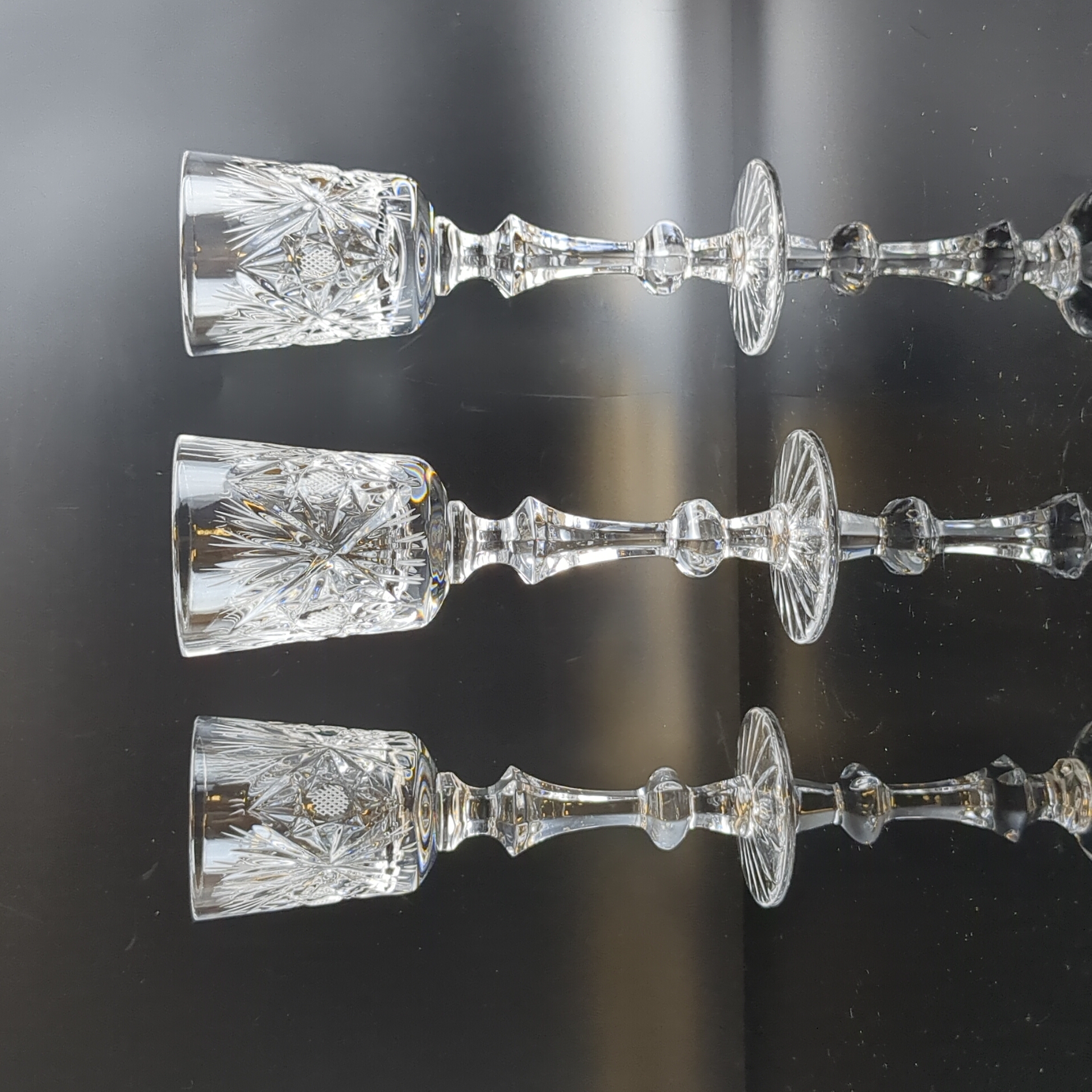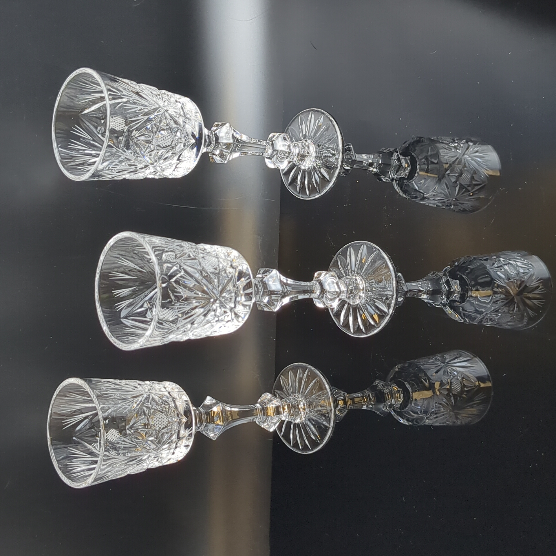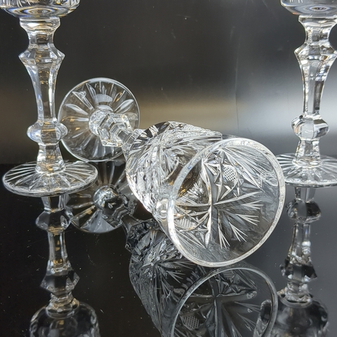 Фужеры набор из 3 штук хрустальные, изящные алмазные грани, ручная резка, геометрический орнамент, ГХЗ, высота- 16.5 см, винтаж СССР 1970-1990 гг. Звонкие, статные, на изящной ножке, отличные праздничные бокалы.