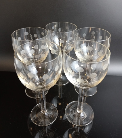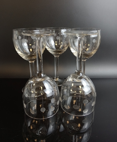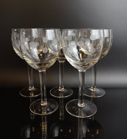 Фужеры набор из 5 штук стекло, резной декор, матовое стекло, 200 мл., высота -16 см, винтаж СССР 1970-1990 гг. Присутствуют следы использования - состояние на фото