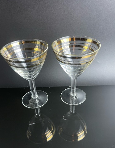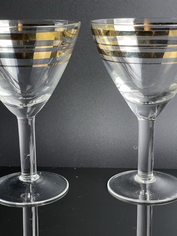 Фужеры советсткие набор из 2 штук, стекло, позолота, 125 мл, винтаж СССР 1960-1990 гг. Высота - 12.5 см, диаметр верха - 8.5 см. Присутствуют следы использования, местами стерта позолота- состояние на фото