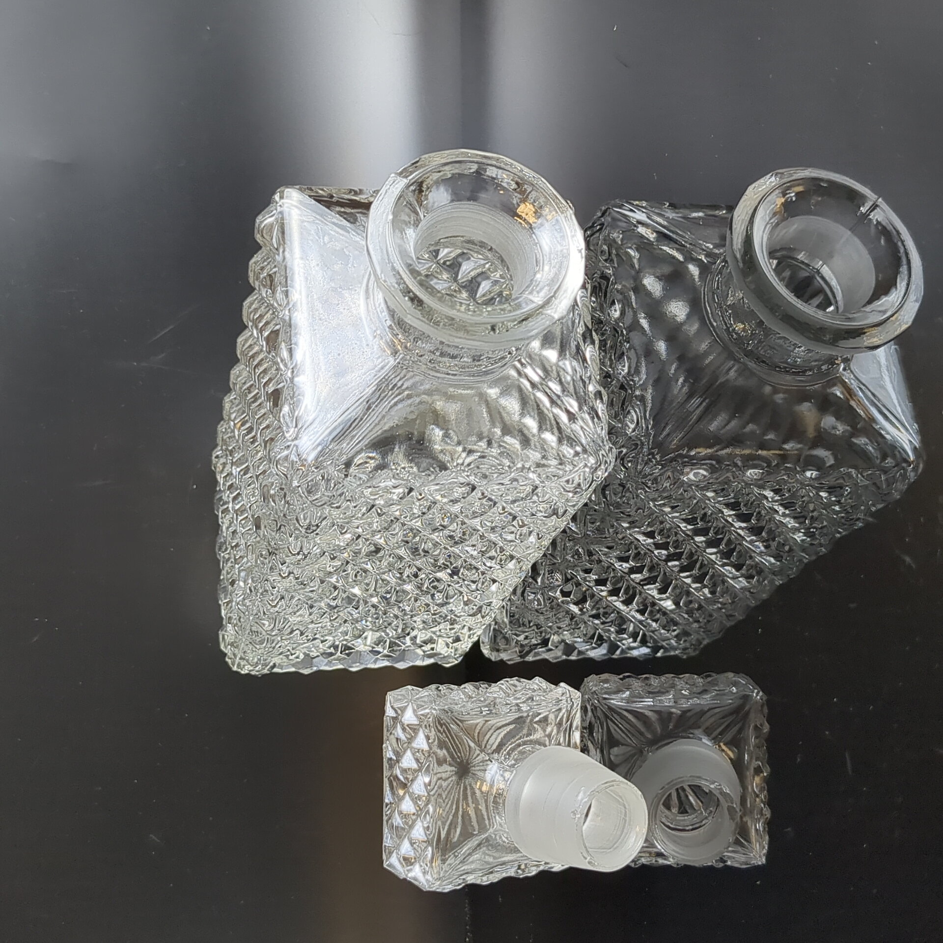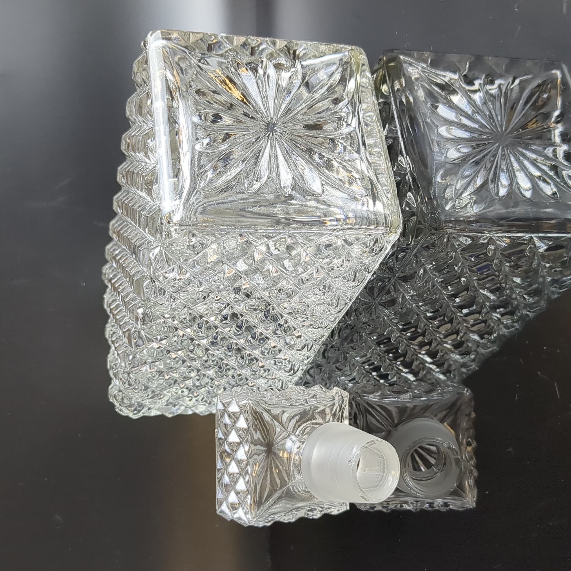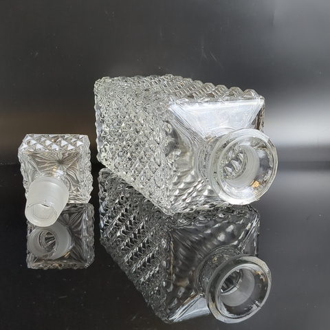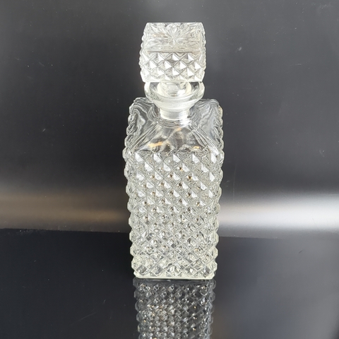 Графин, штоф с крышкой граненый для подачи крепких напитков, алмазная грань, геометрический орнамент, винтаж СССР 1970-1990 гг. Высота - 25 см. Состояние на фото