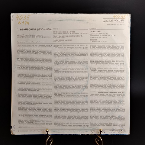 Г. Венявский виниловая пластинка 12 дюймов Воспоминание о Москве, Четыре мазурки, Андрей Корсаков скрипка, классика, LP, винтаж СССР Мелодия