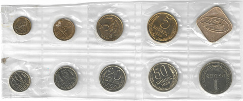 Годовой набор Госбанка СССР 1989 ЛМД с жетоном мягкий, повреждение запайки (UNC)