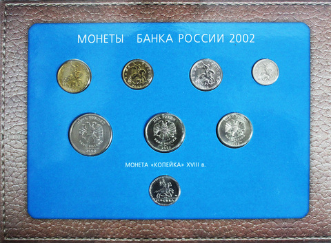 Разменные монеты РФ 2002 года выпускались ограниченным тиражом в официальном буклете.