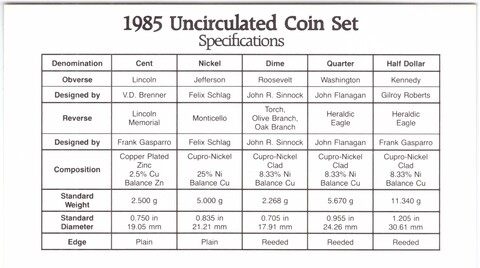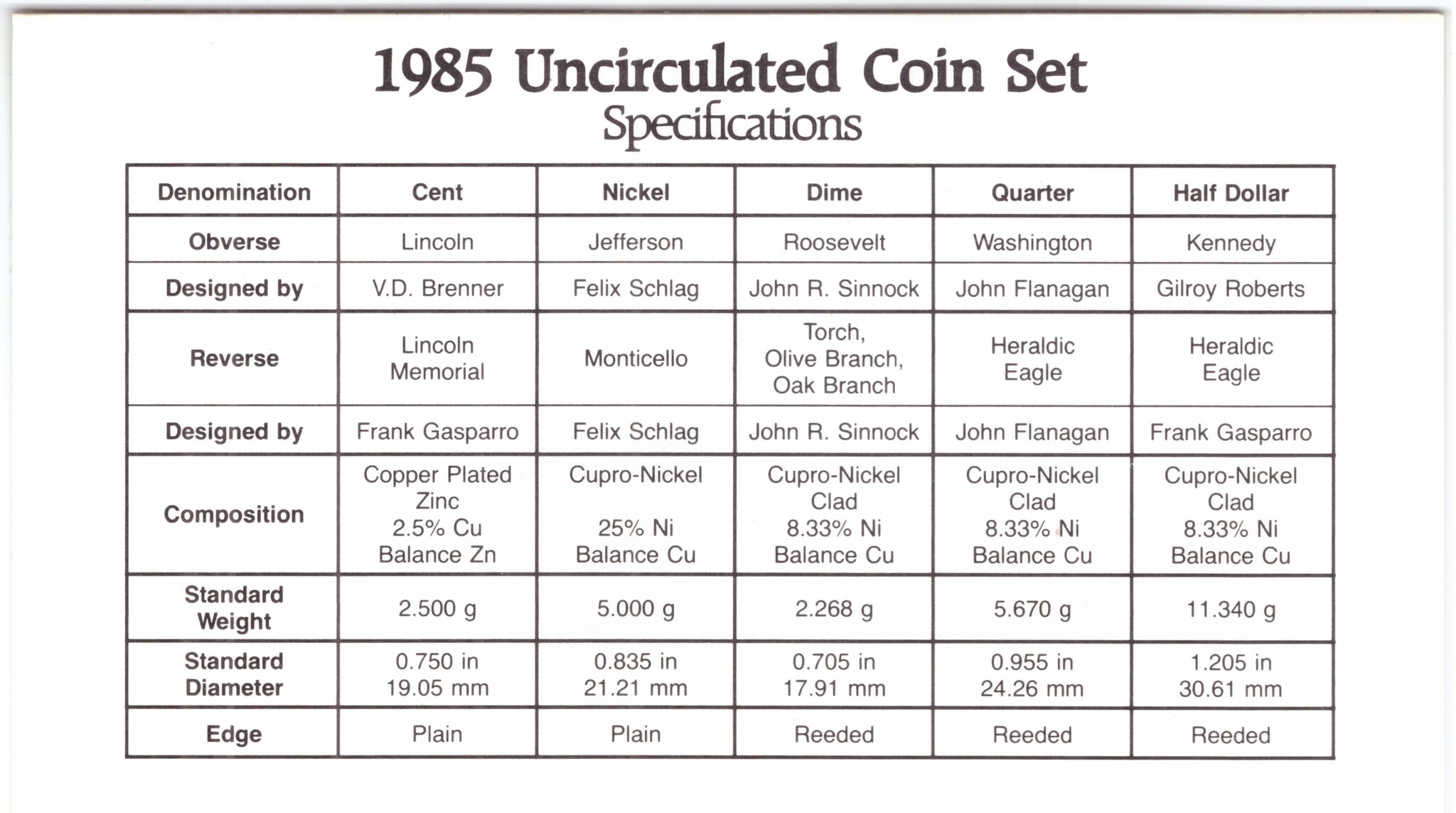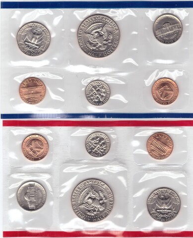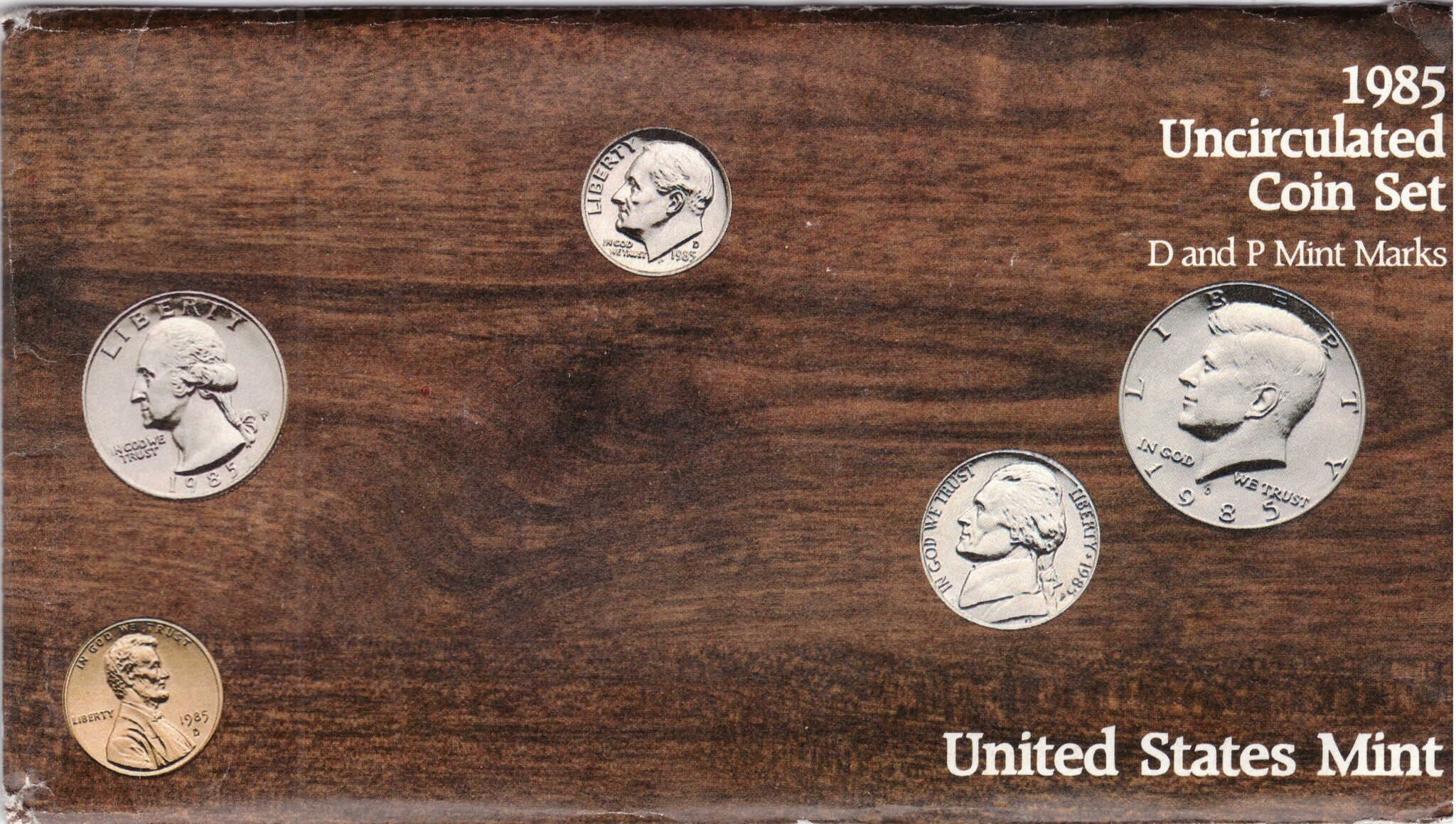 Годовой набор монет США 1985 год (5 монет + жетон - D; 5 монет + жетон - P) в родном конверте. Медно-никель, медь