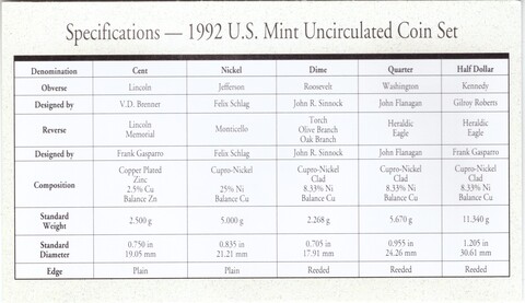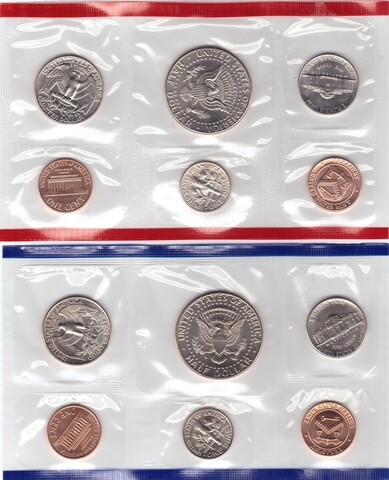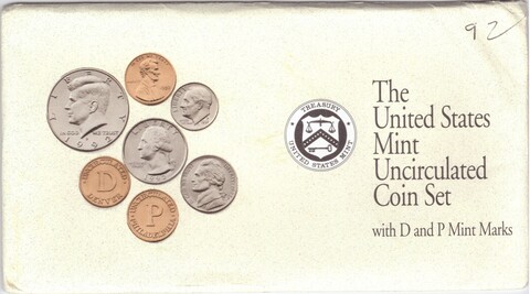 Годовой набор монет США 1992 год (5 монет + жетон - D; 5 монет + жетон - P) в родном конверте. Медно-никель, медь