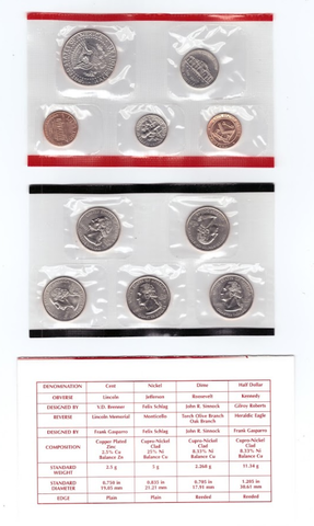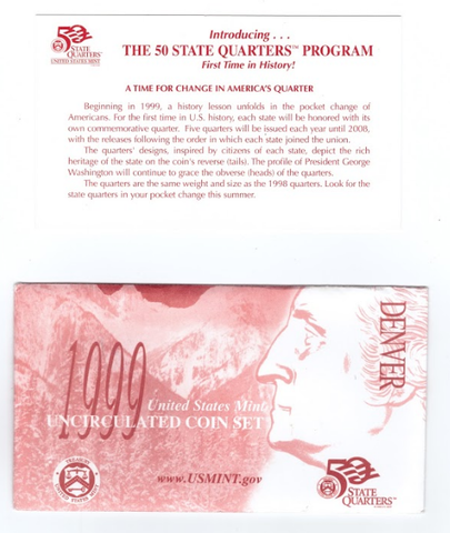Годовой набор США в родной запайке 1999 год двор D + 5 монет Штаты
