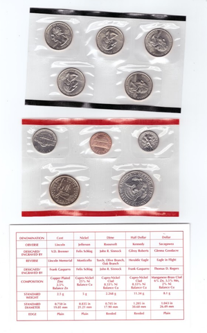 Годовой набор США в родной запайке 2000 год двор D + 5 монет Штаты